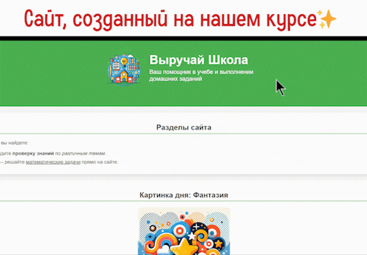 Этот курс — идеальный старт для школьников 6–10 классов (от 11 лет), которые хотят попробовать себя в IT и научиться делать настоящие веб-проекты — от простых страниц до интерактивных игр и медиаплееров.