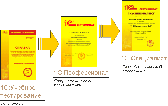 Рекомендуем Вам не останавливаться на достигнутом и сдать сертификационный экзамен "1С:Профессионал". Сертификат "1С:Профессионал" является официальным и общепризнанным подтверждением того, что его владелец может эффективно использовать в своей работе весь спектр возможностей наиболее распространенных программ автоматизации бухгалтерского, оперативного торгово-складского, управленческого учета и расчета заработной платы. Наличие сертификата "1С:Профессионал" выгодно выделит Вашу кандидатуру у работодателя.